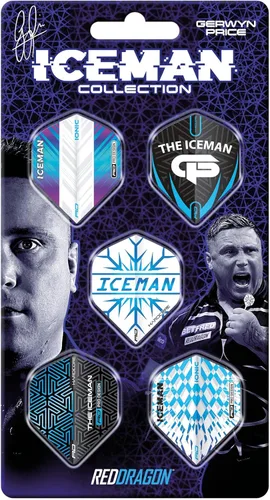 Gerwyn Price Iceman Hardcore Dart Flight Collection 5 juegos por paquete (15 vuelos en total) Extra grueso: vuelos de dardos de 100 micrones Vuelo de dardo de forma estándar Los diseños y colores pueden variar