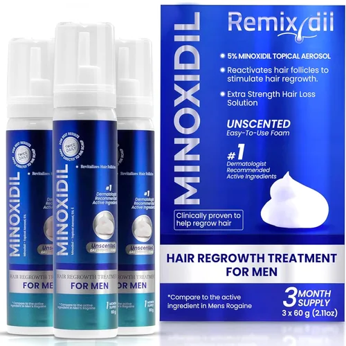 Clínicamente probado: Remixidil Men's 5% Minoxidil Foam es un tratamiento recomendado por dermatólogos que ayuda a reducir la pérdida de cabello y estimula un nuevo crecimiento. Funciona en el adelgazamiento del cabello y la calvicie de patrón masculino para un cabello más grueso, más lleno y saludable. Estimulación del folículo piloso: El ingrediente activo, el minoxidil, reactiva los folículos pilosos latentes, fomentando el crecimiento natural del cabello. Con un uso regular, soporta el cabello más grueso y fuerte, ayudándote a restaurar tu confianza y mejorar la densidad del cabello. Suministro de tres meses: Cada botella contiene un suministro de 3 meses, lo que garantiza un tratamiento consistente para obtener los mejores resultados. Mantenerse comprometido con tu rutina con esta fórmula clínicamente probada te ayuda a lograr y mantener el crecimiento del cabello visible con el tiempo. Absorción no grasa: Esta espuma de rápida absorción no deja residuos grasos ni acumulación. Es suave para el cuero cabelludo, diseñado para el uso diario para mantener tu cuero cabelludo cómodo y libre de irritación durante tu rutina de tratamiento de crecimiento del cabello. Remixidil viene con un aplicador fácil de usar para una aplicación precisa y sin problemas directamente en el cuero cabelludo. Esta entrega dirigida ayuda a maximizar la efectividad del tratamiento al tiempo que minimiza los residuos.