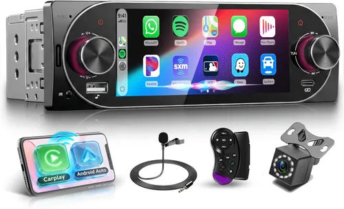 CarPlay inalámbrico y Android Auto + Mirror Link: este estéreo de coche de un solo DIN es compatible con la conexión inalámbrica CarPlay y Android Auto, lo que te permite acceder a los contactos, navegación, música, videos y notificaciones de tu teléfono a través de control de voz o táctil para una conducción más segura y sin distracciones. También cuenta con función de enlace de espejo Android/iOS: sincroniza la pantalla de tu teléfono con la radio de coche con pantalla táctil de 5.1 pulgadas con facilidad, y disfruta de todas las aplicaciones móviles directamente en este receptor de audio de automóvil de un solo DIN sin adaptadores adicionales. Bluetooth 5.2, radio FM/RDS y ecualizador personalizado: Radio de coche monodinario equipado con Bluetooth 5.2 avanzado, este estéreo de automóvil de un solo DIN ofrece una conexión estable y de baja latencia para llamadas manos libres y transmisión de música de alta fidelidad. La radio FM/RDS incorporada admite una búsqueda manual de canales totalmente automática, semiautomática y precisa, para que pueda captar música, noticias y actualizaciones de tráfico en cualquier momento. Personaliza tu audio con múltiples modos de ecualización de hardware: ajusta los agudos y los graves libremente para que coincida con tu gusto musical y acústica de automóvil con este receptor de audio para automóvil de un solo DIN Entrada de cámara de respaldo para seguridad de estacionamiento estéreo de coche de 1 DIN: Esta radio de coche de un solo DIN es totalmente compatible con la entrada de cámara de respaldo; al cambiar a marcha atrás, la pantalla táctil de 5.1 pulgadas cambia automáticamente a imagen de visión trasera, proporcionando imágenes claras para ayudarlo a estacionar de forma segura y evitar obstáculos. Después de estacionar, la pantalla regresa sin problemas a la interfaz anterior, lo que hace que este receptor de audio para automóvil de un solo DIN sea imprescindible para una seguridad sin complicaciones en el automóvil. Control del volante (SWC): este estéreo de automóvil de un solo DIN admite la función de aprendizaje del botón del volante, lo que le permite personalizar y controlar las funciones clave directamente a través del volante de su automóvil: ajustar el volumen, cambiar canciones, responder llamadas sin quitar las manos del volante. Este diseño fácil de usar aumenta la seguridad y la comodidad de conducción, haciendo que cada viaje sea más suave con esta radio de automóvil de un solo DIN. Retroiluminación de color personalizado y USB / tipo C multifunción: esta radio para automóvil de un solo DIN cuenta con ajustes de retroiluminación de color personalizables, con luces cambiantes y bailarinas que añaden un toque elegante y personalizado a tu experiencia de conducción. Los dos puertos USB/Tipo-C admiten la reproducción de música a través de unidades USB y carga rápida de alta corriente para sus dispositivos móviles: carga y reproducción simultáneamente con este estéreo de automóvil todo en uno solo DIN.