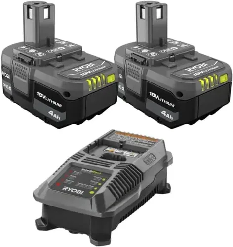Ryobi ONE+ Batería de iones de litio de 18 V de 4.0 Ah (paquete de 2) con cargador de iones de litio de 18 V