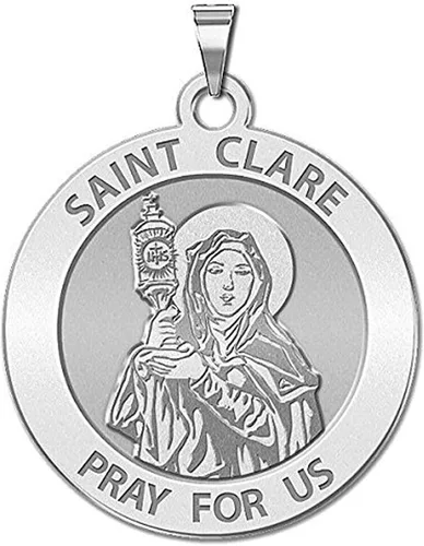 Saint Clare of AssisiMedalla religiosa-34inch tamaño de un níquel, plata de ley