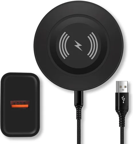 Wide Compatibility: 15W Samsung Fast Wireless Charger Station for Samsung Galaxy S24 FE S24 Ultra S24+ S23 Ultra S23 FE S23+ S23 S22+ S22 Ultra S21 FE S22 S21 S20+ S10+ Note20 Ultra;Android Wireless Charger Pad Fast Charging for Google Pixel 9 Pro Fold 9 Pro XL 9 Pro 8 Pro 8 7 7 Pro 6 6 Pro and other wireless-enabled devices(Note: Android wireless charger do not support Samsung Galaxy A Series likes Samsung A14,Google Pixel A Series Phone likes Pixel 6a) Usage Guide: After the wireless charger is powered on,the indicator will blink green for about 2 seconds.In the charging state, the wireless charger will continue to blink green for 15 seconds,and then the indicator will first turn red and then go off.Incorrect placement,wireless charging indicator light is not on;If your phone does not support wireless charging or the phone case is too thick,there are metal objects or cards,the wireless charging indicator will flash red and cannot be charged Equipped with a QC3.0 Adapter: This wireless charger comes with an 18W power adapter to charge your phone more efficiently. There is only one USB-C port on the front of the charging cube, which supports up to 18W output. The combination of wireless charging pad + QC3.0 charging brick can provide the corresponding charging power for most devices that support wireless charging Portable Design,High Quality Material: This charging pad is small in size, radius 48 mm, thickness 13 mm, 3ft fast charging cable, and USB A charging block can be put into your pocket, backpack, handbag or travel bag, small space, easy to carry, suitable for travel, home and office. Wireless charging stations are made of soft materials that won't scratch your desktop Package Includes: 1 x 15W wireless charger pad, 1 x 3FT USB A to USB C cable, 1 x USB A fast wall charger block.Say goodbye to tangled cords and enjoy wirelessly charge by simply laying your phone on the charging stand,no more plug in/ out troubles