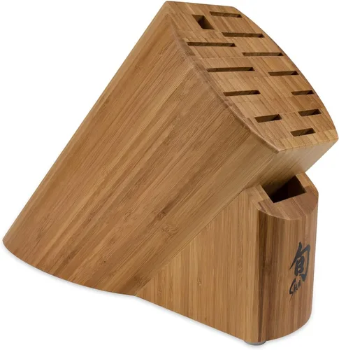 BLOQUE DE CUCHILLOS DE COCINA: Hecho de bambú naturalmente duro, el bloque de cuchillos de bambú Shun combina elegancia atemporal con durabilidad práctica, añadiendo estilo a cualquier cocina. ALMACENAMIENTO DE CUCHILLOS VERSÁTIL: Diseñado para acomodar hasta 13 piezas, este bloque de cuchillos cuenta con cuatro ranuras de 2.1 pulgadas, tres ranuras de 1.6 pulgadas y cuatro ranuras de 1.2 pulgadas, junto con espacios designados para un acero de afilado y tijeras. Exhibición elegante: este bloque de cuchillos sostiene sus cuchillos de cocina de forma ordenada y segura, asegurando que sus cuchillos sean fácilmente accesibles y se muestren elegantemente. Diseño atractivo: hecho de bambú auténtico, este bloque de cuchillos es fácil de limpiar y resistente a las manchas. El bambú es uno de los recursos más renovables del mundo, lo que lo convierte en una opción ecológica para su cocina mientras agrega un toque de belleza. Artesanía japonesa: cada cuchillo Shun está meticulosamente hecho a mano en Japón, lo que refleja un legado de experiencia tradicional en la fabricación de cuchillos y una dedicación a la calidad superior.