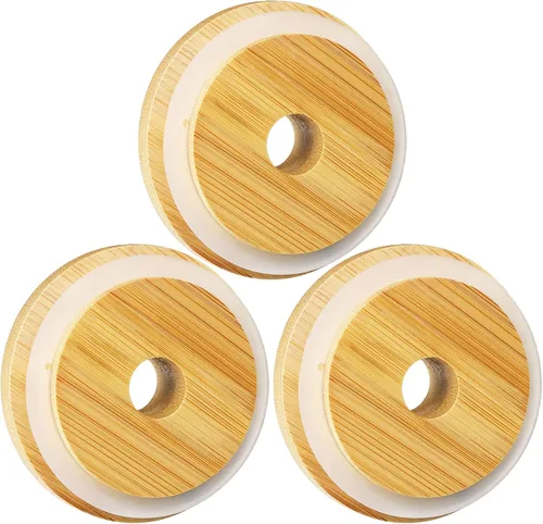【Acerca del tamaño】 nuestra tapa de tarro de bambú mide 70 x 54 mm en diámetro exterior e interior, puede funcionar con la mayoría de tarros Mason y tarros de enlatado de boca regular, Ball o Kerr. El diámetro del agujero para la pajita mide 12 mm / 0.59 pulgadas, lo suficientemente ancho para las pajitas. Material de bambú natural: las tapas de los tarros Mason con agujero para popote están hechas de material de bambú 100% natural, que es biodegradable y seguro de usar, no se deforma ni rompe fácilmente. 【Amplia compatibilidad】Estas tapas de bambú contienen un anillo de silicona desmontable debajo, pueden reemplazar y son compatibles con la mayoría de los tarros de albañil y tarros de enlatado de boca regular, pueden funcionar con vasos de beber y latas de almacenamiento de alimentos con boca de 58 - 68 mm de diámetro, pueden ayudarte a crear algunas bebidas novedosas para fiestas y vasos con pajita para niños 【Consejos cálidos】: 1. Limpie las tapas después de usarlas; 2. No use agua por encima de 85°C; 3. No use tapas de bambú para almacenar ningún líquido en el frasco Mason durante mucho tiempo.