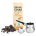 Prana Chai Lovers - Paquete de iniciación con tetera, colador de malla fina y mezcla masala totalmente natural, mezclado a mano con miel para té