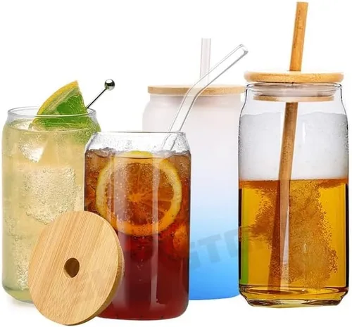 ¿Para qué sirve Vasos de vidrio con tapas y pajitas de bambú, juego de 2 vasos de cerveza en forma de lata, vaso de vidrio de 16 onzas, juegos de vasos para beber?