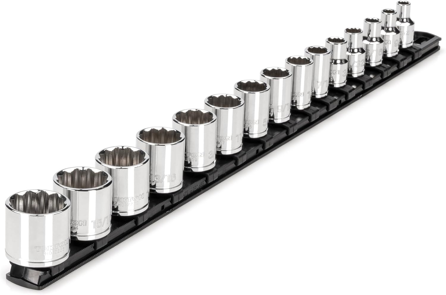 TEKTON Juego de llaves de vaso de 12 puntos poco profundas de 3/8 pulgadas con riel, 15 piezas (1/4-1 pulg.) | SHD91111