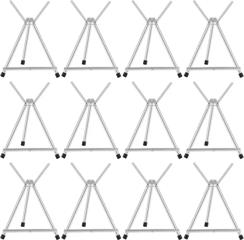 Lista de embalaje: recibirás 12 caballetes portátiles telescópicos plegables plateados, cantidad suficiente para satisfacer tus diferentes necesidades, puedes aplicarlo como caballete de soporte al pintar, mantén tu entusiasmo creativo al pintar Tamaño adecuado: el tamaño del caballete plegable es de aproximadamente 17.5 x 16.1 x 19.5 pulgadas (ancho x profundidad x alto) cuando está desplegado, y el tamaño plegado es de aproximadamente 19.5 x 3.8 x 1.9 pulgadas, un extremo del El ala de apoyo es 19 7.4 pulgadas, y las dos alas están desplegadas 16.4 pulgadas; las alas pueden soportar fácilmente lienzos, fotos, fotos, libros, carteles, presentaciones, carteles de tienda, exhibiciones de boda y mucho más Diseño ajustable: soporte de exhibición plegable con 2 alas de brazo de extensión ajustables que se pueden girar hasta 180 grados; las alas de soporte te permiten mostrar lienzos de diferentes tamaños de forma estable sin doblarse fácilmente; los pies de goma antideslizantes pueden mejorar la protección del escritorio; el principio de estabilidad triangular puede darte un mejor apoyo, incluso en carreteras irregulares Portátil y de transporte: soporte de exhibición de escritorio ajustable, hecho de aleación de aluminio de calidad, ultraligero y fácil de llevar, solo 10.58 oz/ 1 libra, la capacidad de carga es de 10 libras; este soporte se despliega al instante sin necesidad de montaje, ideal para bocetos al aire libre o viajes Amplia aplicación: este soporte de exhibición plegable es el compañero para que los niños y adultos dibujen o dibujen, se puede aplicar en la escuela, tiendas minoristas, tiendas, exposiciones, oficinas, aulas, hogares, lugares de boda o lugares donde las galerías de arte del museo quieren mostrar sus obras