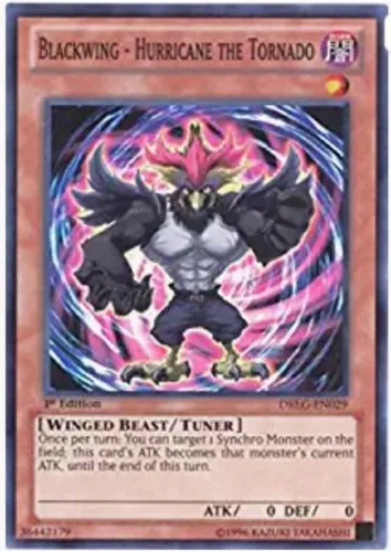 Yu-Gi-Oh! es un juego estratégico de cartas intercambiables en el que dos jugadores se enfrentan entre sí usando una variedad de cartas de monstruo, hechizo y trampa para derrotar a los monstruos de su oponente y ser los primeros en dejar caer los puntos de vida del otro a 0. Nombre de la tarjeta: Blackwing - Hurricane the Tornado Tipo de tarjeta: Monstruo del sintNúmero de tarjeta: DRLG-EN029 Conjunto: Dragones de la Leyenda Atributo : Oscuro Nivel: 1 Tipo de monstruo: bestia alada/afinador Código de acceso: 36442179 Texto de la carta: Una vez por turno: puedes seleccionar 1 Monstruo de Sincronía en el campo; el ATK de esta carta se convierte en el mismo que el ATK actual de ese objetivo, hasta el final de este turno.